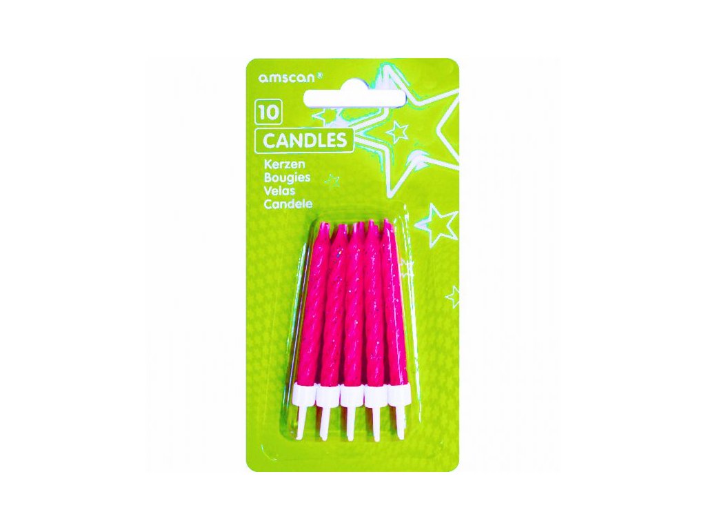 Dortové svíčky tmavě růžové s glitry a držáky 10ks Výška svíčky je 6cmDoplňkové parametry