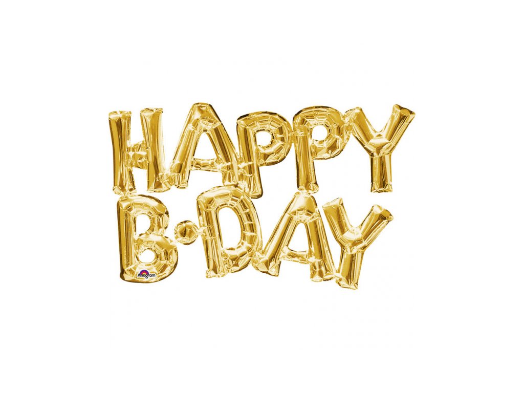 Fóliové balónky zlaté HAPPY B.DAY 76cm x 48cm.