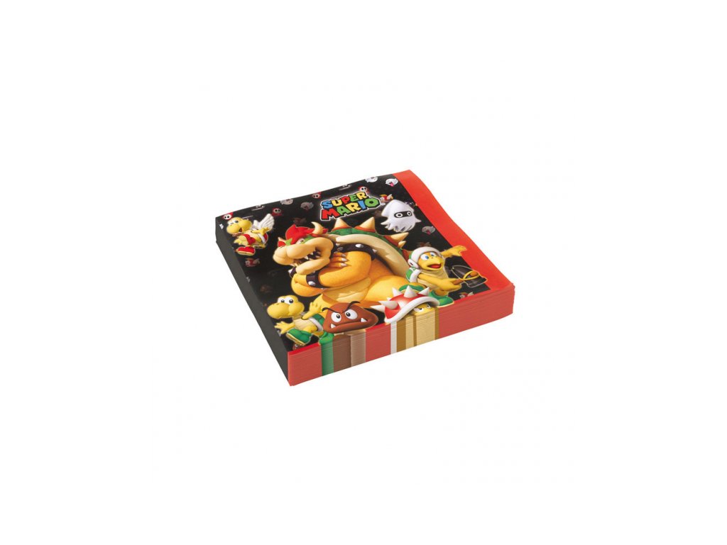 Super Mario ubrousky 20ks 33cm x 33cm. Kvalitní papírové ubrousky s motivem. Ubrousky doporučujeme doplnit dalšími produkty v nabídce se stejným motivem - talíře, kelímky, slámky popř. ubrusy.Doplňkové parametry