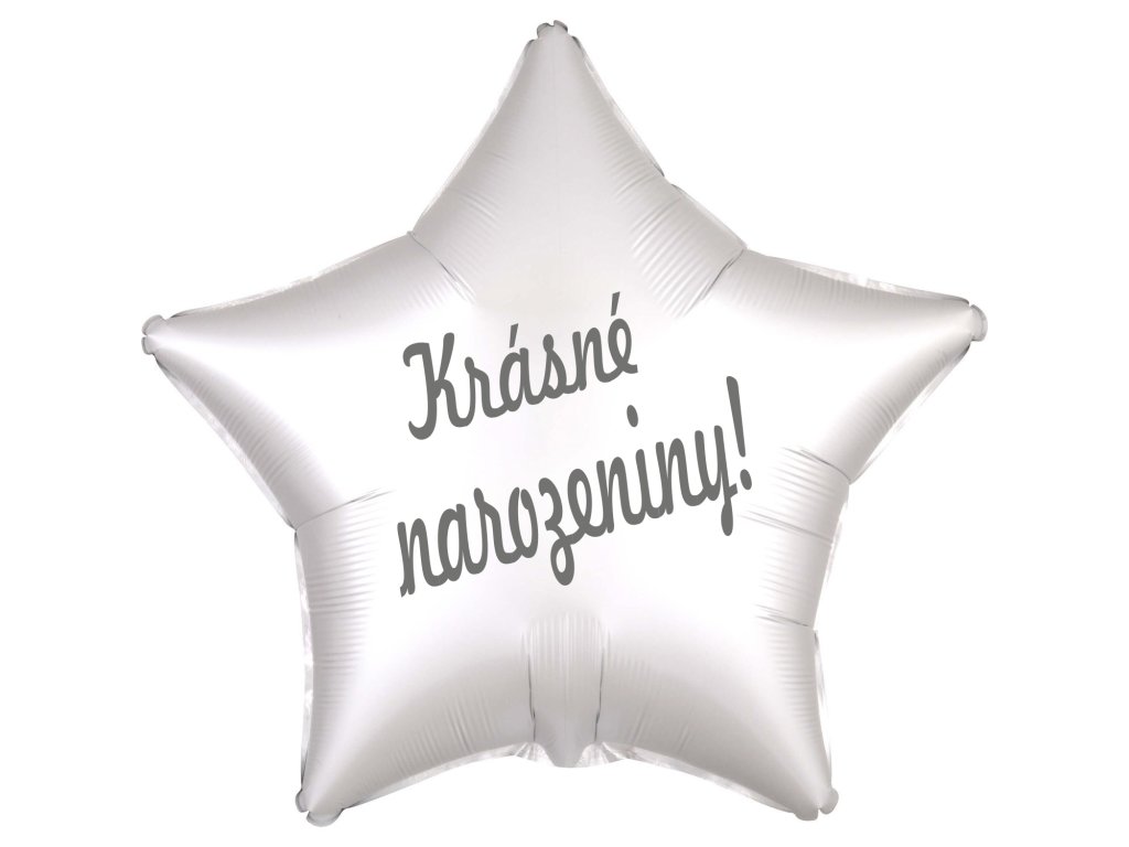 Balónek fóliový bílá hvězda saten Krásné narozeniny!