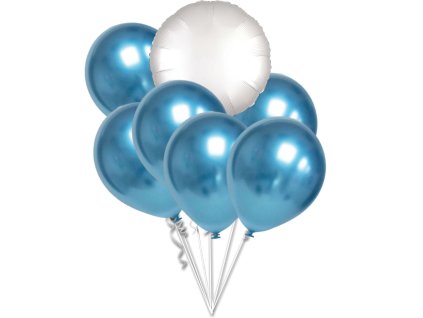 Balónková girlanda chrom modrá 3 m. Set balonků připravených na výrobu luxusní balónkové girlandy. Balení obsahuje 48 kusů modrých chromových balónků, držáky a 1 x 4 m provázek.