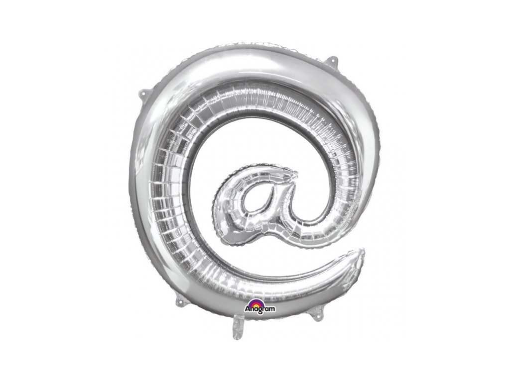 Symbol @ stříbrné fóliové balónky 33cm x 35cm.